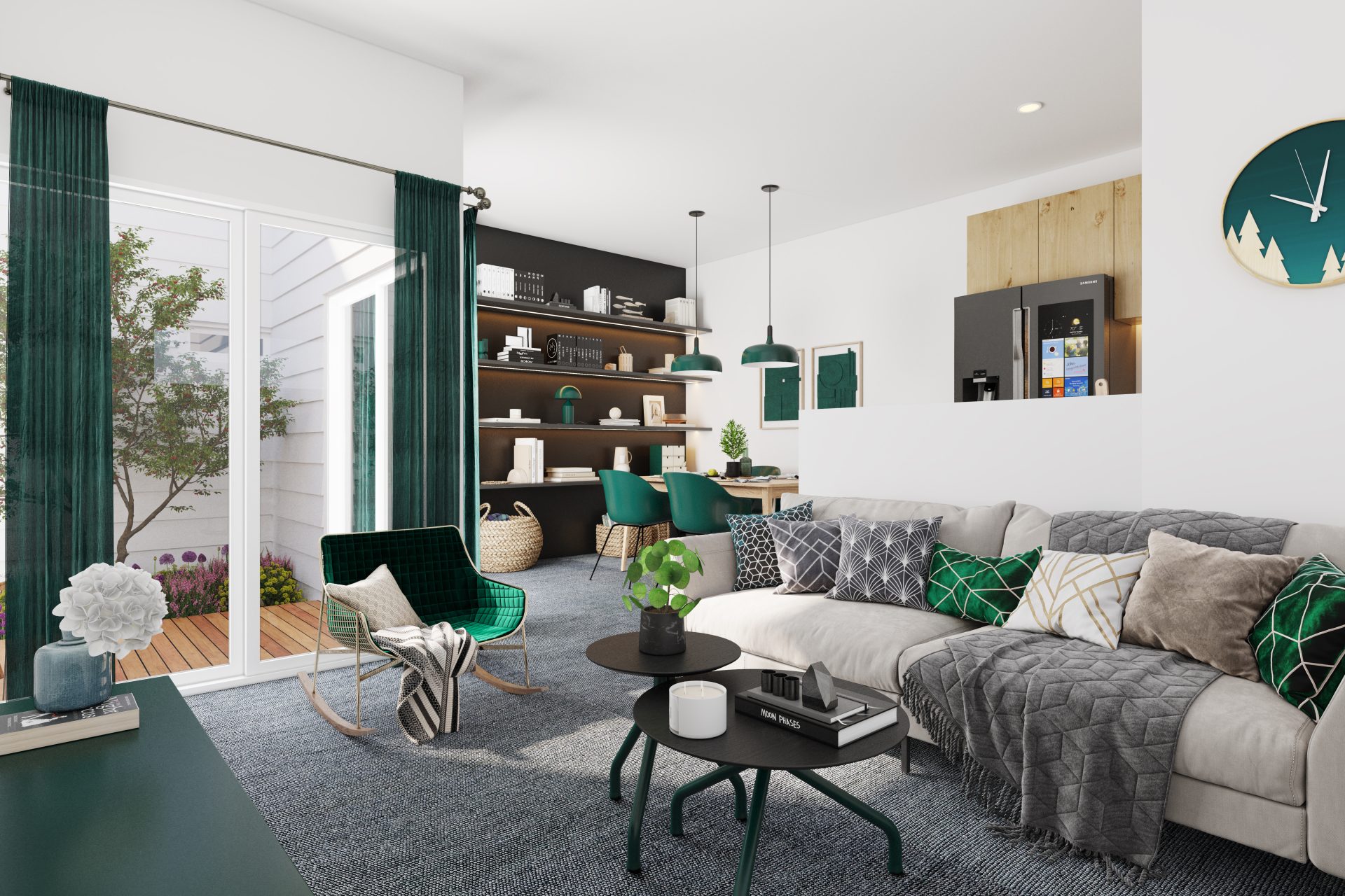 実際に生活している状況を想像しながら、リアルな建築パースを製作させていただきました。